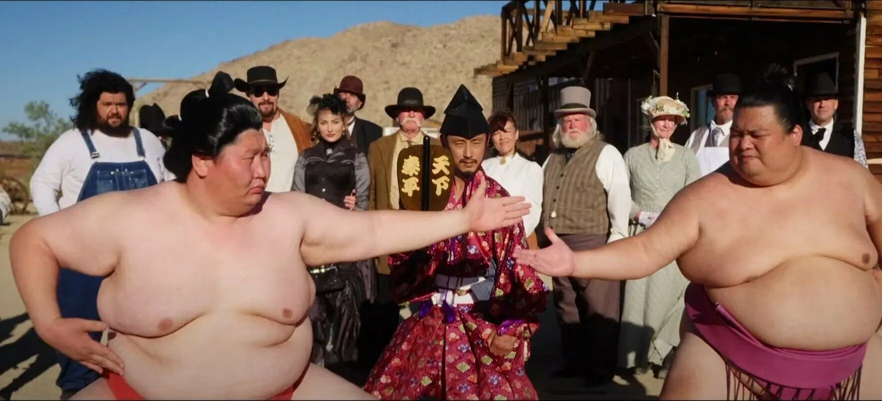 Калифорния, 1907-й год. В городке Голдвуде из-за ремонта железной дороги застревает японская делегация борцов сумо, которая направляется в Вашингтон для встречи с президентом Теодором Рузвельтом. В Голдвуде запрещено ношение огнестрельного оружия, и когда жестокая банда во главе с безжалостным Джарреттом Кингри нападает на жителей, прославленные сумоисты вынуждены объединиться с Максом (Александр Невский), стрелком русского происхождения — единственным, кто может противостоять угрозе.